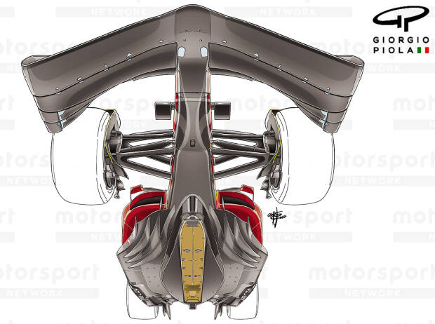 In der Zwischenzeit geht die Entwicklungsschlacht weiter, und die Teams arbeiten fleißig an neuen Bodenkonstruktionen – nicht nur, um die aerodynamische Leistung zu verbessern, sondern auch, um Gewicht zu sparen. Letzteres ist besonders wichtig, wenn man bedenkt, dass ein großer Teil des Starterfeldes nicht in der Lage war, das Mindestgewicht zu erreichen, auch wenn dieses kurz vor der Saison auf stolze 698 Kilogramm angehoben wurde. In Anbetracht der erhöhten Belastungen, denen der Unterboden nun ausgesetzt ist, mussten die Teams etwas zusätzlichen Spielraum einplanen. Während ein Teil davon durch ein besseres Verständnis der realen Belastungen, die auf die verschiedenen Bereiche des Bodens einwirken, beseitigt werden konnte, war die späte Änderung des Reglements, die eine Metallstütze vor dem Hinterreifen vorsieht, ebenfalls von Bedeutung. Dadurch wird nicht nur das Porpoising reduziert, sondern auch die Steifigkeit, die dadurch erreicht wird, mit den Plänen zur Gewichtsreduzierung kompensiert. Flicken-Stil bringt Vorteile In Anbetracht der Vorlaufzeit für die Herstellung des Unterbodens, der bei weitem das größte Bauteil am Auto ist, haben sich die Teams für einen Ansatz im Flicken-Stil entschieden, der es ihnen ermöglicht, Teile des Unterbodens auszutauschen, anstatt jedes Mal einen komplett neuen Unterboden herstellen zu müssen. Giorgio Piola Dem Edge Wing wird eine große Aufmerksamkeit zuteil