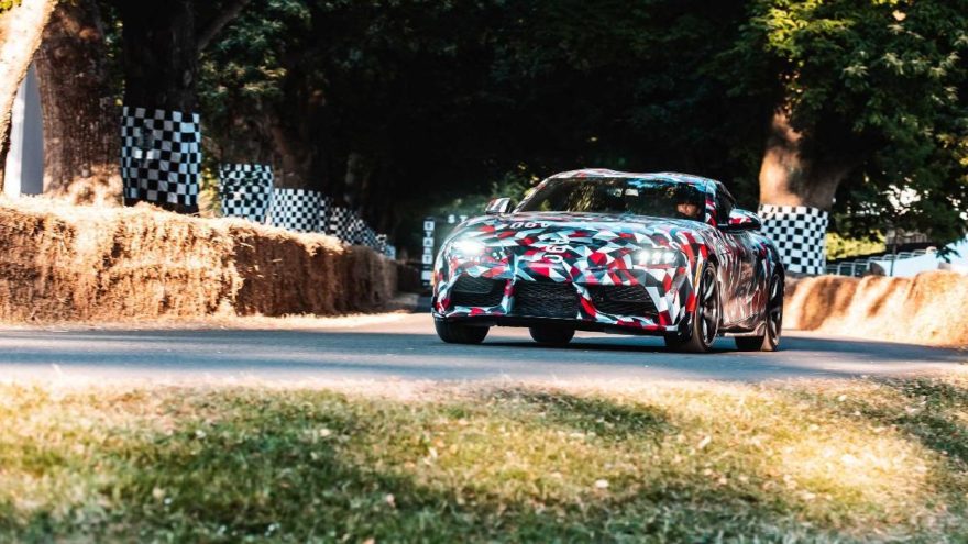 Binlerce otomobil tutkunun katıldığı dünyaca ünlü “Goodwood” Hız Festivali’nde ilk kez sergilenen Yeni Supra, Toyota Gazoo Racing’in renklerine boyanmış bir şekilde pistte tur attı. Yeni Supra öne konumlandırılmış sıralı altı silindirli motora ve arkadan itişli sürüşe sahip. Tamamen sürüş eğlencesine ve performansa odaklanan Supra, Toyota’nın yarış takımı Toyota Gazoo Racing ile birlikte geliştirildi. Prototipten anlaşıldığı kadarıyla otomobil uzun burunlu bir yapıya sahip. Özellikle ön tampon altındaki aerodinamik tasarımlar aracın yere basma kuvvetinin geliştirilmesine yönelik yapılan detaylar.