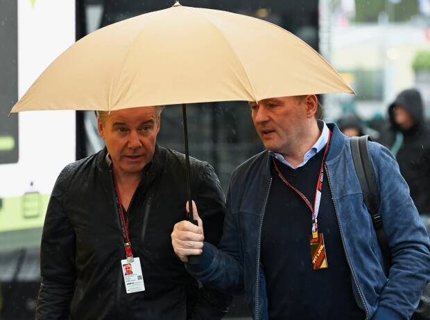 Jos Verstappen hat beim Grand Prix der Emilia-Romagna in Imola ein tiefes Gefühl der Befriedigung empfunden, als sein Sohn Max im Rennen am Sonntag Lewis Hamilton im Mercedes überrunden konnte. Verstappen feierte am Ende seinen zweiten Saisonsieg im vierten Rennen, Hamilton hingegen kam als 13. ins Ziel. Max Verstappens Manager Raymond Vermeulen (links) mit Jos Verstappen