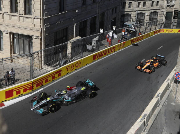 Lando Norris sieht kein Fehlverhalten bei sich und Lewis Hamilton im Qualifying von Baku (Formel 1 2022 live im Ticker) und hält die hektische Schlussphase nach der roten Flagge in Q1 für gefährlicher als das, für was er und sein Landsmann untersucht worden sind. Lewis Hamilton machte vor Lando Norris absichtlich langsam