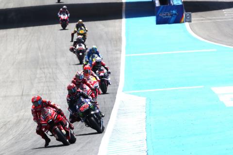 There were only two races with last-lap passes for victory in MotoGP this season, when Enea Bastianini overtook Francesco Bagnaia on the final tour of MotorLand Aragon and when Alex Rins snatched the advantage from Bagnaia at Phillip Island.While four riders remained in mathematical title contention until the penultimate round, the quality of racing was sometimes called into question by fans, media and the riders themselves.Marc Marquez was particularly vocal, the eight-time world champion highlighting that the sport’s latest technology is taking control away from the riders, meaning it is harder to make a difference.This Marc Marquez documentary series looks AMAZING! | MotoGP 2023Video of This Marc Marquez documentary series looks AMAZING! | MotoGP 2023This includes aerodynamics, which creates a kind of ‘dirty air’ situation more commonly associated with Formula 1; and ‘ride height devices’, which decrease the extent to which the bike ‘wants’ to wheelie on corner exit, and also provide some benefit in braking, allowing riders to brake harder initially.“If you’re not a fan [of Formula 1] then you cannot be a fan of MotoGP either,” said 13-time Grand Prix winner Randy Mamola, “because what we used to hear from Formula 1 three, four, five years ago is ‘I can’t follow the car in front of me’, and we’ve got that [problem of riders struggling to follow] in bike racing?”However, the solution is less simple. Formula 1 reached the point of huge wings and significant turbulence decades ago. Reducing their effect has been part of F1’s ambitions for at least the last 10 or 12 years.Like in F1, MotoGP aerodynamics opened up a new avenue of untapped performance, where greater gains were possible compared to more familiar areas such as suspension geometry, chassis flex or engine character.Related Randy Mamola to become a MotoGP Legend Schwantz, Mamola set for Isle of Man TT lap“It’s about the era,” Mamola says, “it’s about where the regulations are, and where that sits.” As much as it should not be a surprise that MotoGP has followed the same path as F1, the identity of the first manufacturer to really exploit aerodynamics – as well as other non-traditional technologies – should also not be a surprise.“I believe one manufacturer at this moment has a pretty big grip on this, more than one rider can win on the bike, it’s Ducati,” Mamola said.Ducati has Gigi Dall’Igna as the head of their Desmosedici project. Mamola describes Dall’Igna as the Adrian Newey “for two wheels,” Newey being the lead designer on a number of successful F1 cars, most recently with Red Bull, who have won all of their world titles with Newey-designed machines. More than that, when Dall’Igna arrived in Ducati in 2014, they were in the middle of their MotoGP nadir. Having lost Casey Stoner and failed with Valentino Rossi, Ducati bet on Dall’Igna to return them to the peak of motorcycle racing, which they finally achieved this year.Dall’Igna was the first to make the most of aerodynamics, with wings appearing on the Desmosedici GP15, the first Ducati MotoGP bike to really feel Dall’Igna’s influence. Then he brought ‘holeshot devices’ in 2019, and by the end of the year the ‘holeshot device’ had become the ‘ride height device’.Ducati were also one of the first factories to use software to help predict, before the race weekend began, which tyre would be optimal for the race. All of this while maintaining the Desmosedici as the fastest motorcycle in MotoGP.“So, for me, put a freeze,” Mamola said. “You’re [frozen] at doing those specific things so that other manufacturers can catch up, that Ducati can’t take it to the next level, or whoever else.“How they do that, I don’t know, I’m not a regulation or a rule guy or something, but I think something has to happen – concessions for other manufacturers.”While one solution could be to remove such technology and return MotoGP to the state of 2014, for example, albeit with unified electronics, MotoGP is also meant to be a prototype class where engineering innovation is theoretically encouraged.However, the aforementioned unified electronics from 2016, the single tyre manufacturer introduced in 2009, the limits on engine capacity, all detract from the extent to which MotoGP bikes are true prototypes. More ‘eye candy’ in BSB and WorldSBK“Some of the best races I saw [were] with World Superbike and BSB,” said Mamola.“One of the best ones was Thruxton BSB – I mean that is probably the highlight, those three races.”4“I watched all three, and then I linked it and sent it to people going ‘this is racing.’“So, Thruxton, awesome for the ‘eye candy’, meaning you get to see this action and they’re really controlling the bike and drifting it and so on.“But if you really want to do a lap time, it needs to straighten up and you need to be perfect. You need to brake deep, but not over-brake because it goes sideways.”“BSB and WorldSBK”, Mamola says, is “just a different style of racing, it’s just a different platform in which it’s on, and we have to understand those platforms better.” On the other hand, in MotoGP, “Unfortunately, we don’t get to see what we would like to see from the ‘eye candy’ side of things,” Mamola says.He continues, “You’re trying to go from A-B as fast as you can, the engineer types it in, and this is what you do.”5“Before you used to play with the throttle, the thing would start to wheelie, even with a certain amount of electronics, but now you can come out and in second gear just [open the throttle], and the wing will help it drive by going down.“The bikes are incredibly fast accelerating and stopping.”“Now we’re running into problems that Formula 1 have,” Mamola said, “so if you have a problem with Formula 1, you have a problem with [MotoGP].”By Alex Whitworth