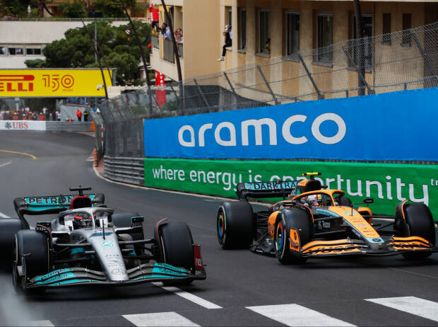 George Russell konnte mit Platz fünf beim Monaco-Grand-Prix seine Serie an Top-5-Resultaten in der Saison 2022 aufrechterhalten. Der Mercedes-Pilot überholte im Verlauf des Rennens seinen Landsmann Lando Norris und fuhr zwischenzeitlich sogar schneller als die Spitze. Im TV nicht zu sehen: George Russell überholt Lando Norris nach Kurve 1