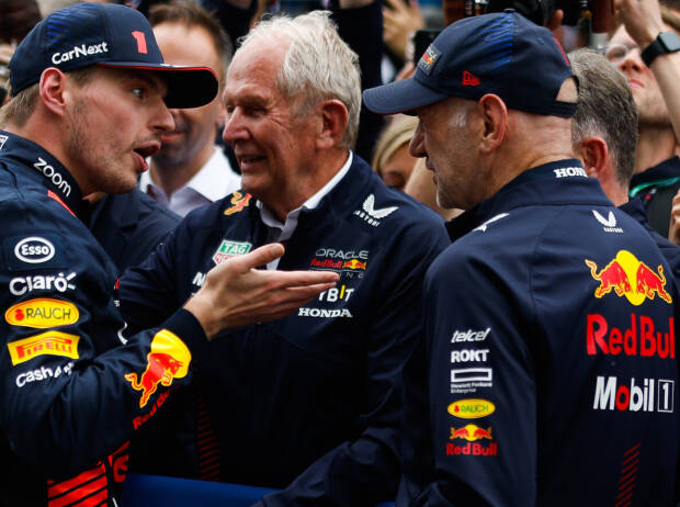 Das Formel-1-Team Red Bull hat am Sonntag beim Grand Prix von Kanada 2023 in Montreal seinen 100. Grand-Prix-Sieg erzielt. Max Verstappen war es, der dem österreichischem Team mit Sitz in Großbritannien den Jubiläumserfolg beschert hat. Max Verstappen nach dem 100. Red-Bull-Sieg mit Helmut Marko und Adrian Newey
