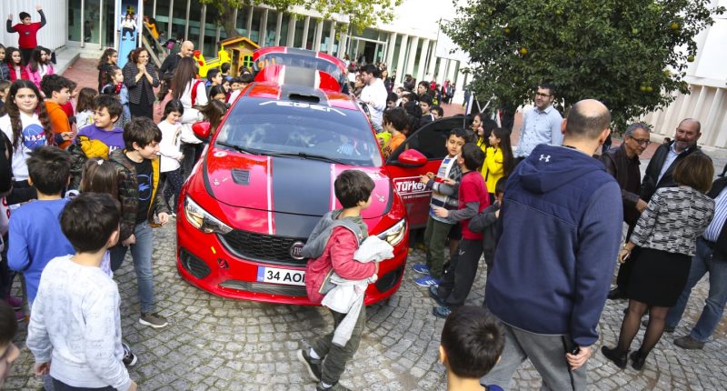 Okulların bahçelerinde sergilenen Fiat Motorsporları tarafından geliştirilen Fiat Egea yarış otomobilini de öğrenciler hayranlıkla izledi