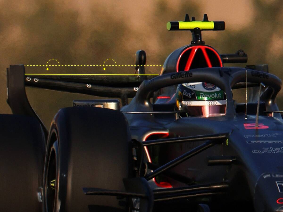 Die Alpine-Lösung ist entsprechend komplex ausgeführt und verfügt über mehrere Anlenkpunkte. Die Variante von Audi wirkt deutlich einfacher und basiert auf einer einzigen Verbindung zum oberen Heckflügel-Element. Das unterstreicht, wie stark die neuen Regeln individuelle Konzepte begünstigen.