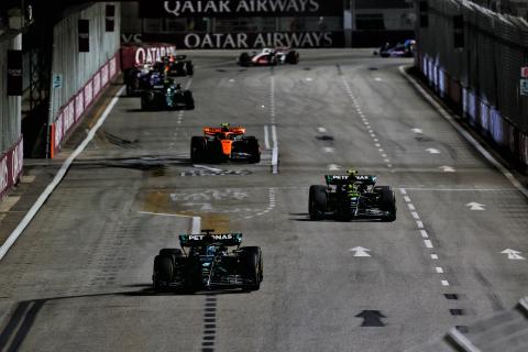 George Russell and Lewis Hamilton made a late second pit stop when running in P2 and P4 respectively having been unable to overtake on track.On fresh medium tyres, Russell and Hamilton breezed past Charles Leclerc, before closing up to the back of Carlos Sainz and Lando Norris.Grand Prix Foundations: Street Tracks in F1Video of Grand Prix Foundations: Street Tracks in F1Due to some tactical driving from Sainz, the Mercedes duo were unable to overtake Norris, thus settling for third and fourth going into the final lap.Hamilton would eventually finish third after Russell ed out on the final lap.Speaking to Sky after the race, Wolff said: “Super that Lewis is on the podium. He had a brilliant race and and had pace at the end. Just a shame for George because he worked hard for that.“It could have been a good third and fourth, lots of points, but now we lost 22 [points] against Ferrari.”
